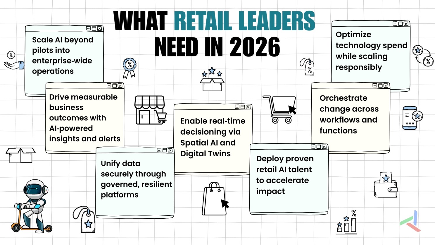 The opportunity to lead through AI is real, but it’s fleeting. Retail leaders who act decisively in 2026 will have a 12–18-month window to build differentiated experiences before AI becomes table stakes and customer expectations reset around intelligent, responsive retail.